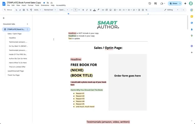 Book Funnel Sales Copy Doc